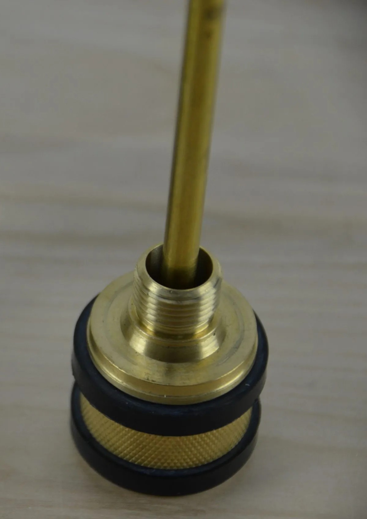 - 5 ½” machined-brass head with protective rubber bumpers for drop resistance