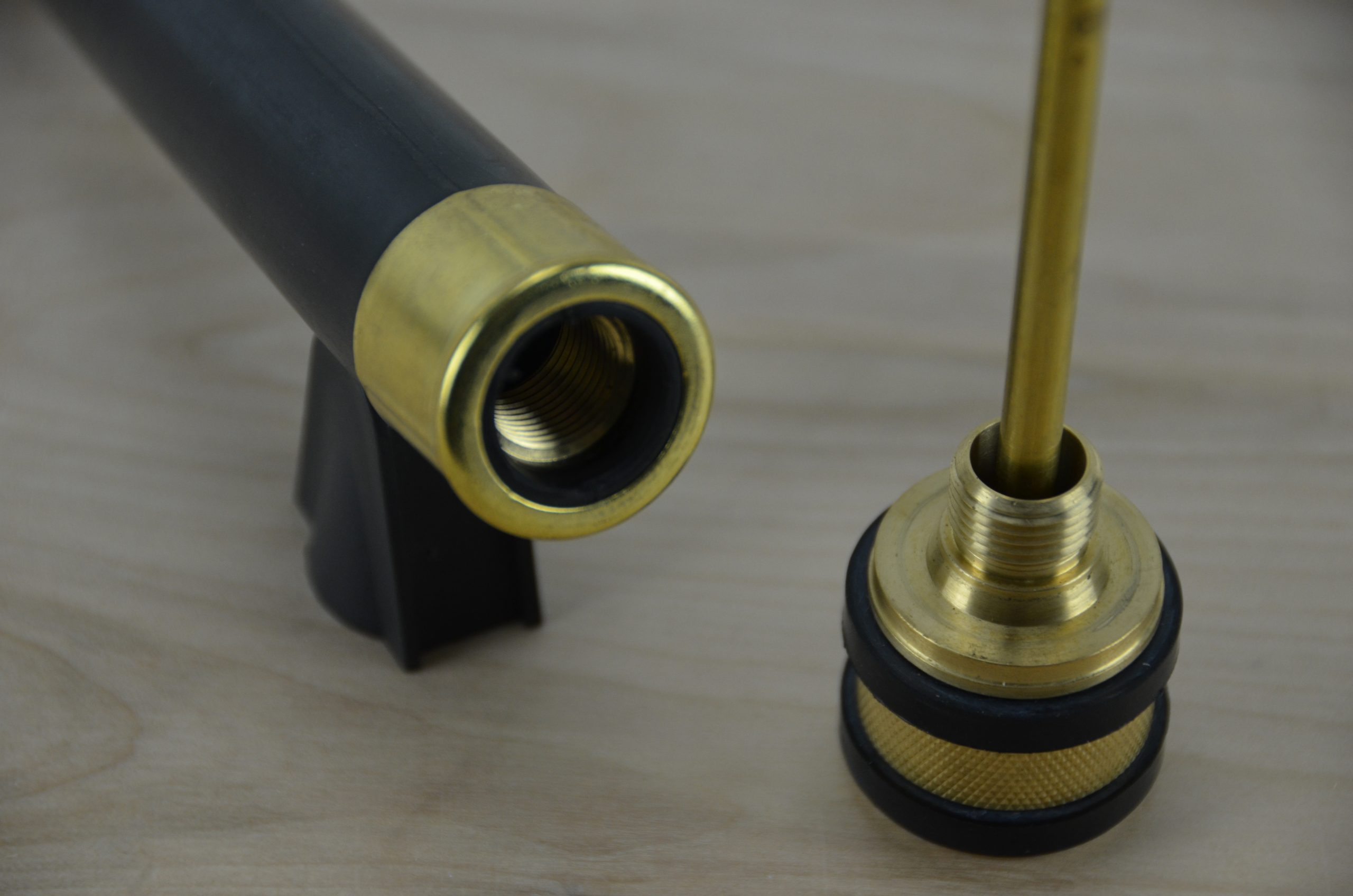 All brass fittings with rubber bumpers to prevent scratching if dropped on equipment.